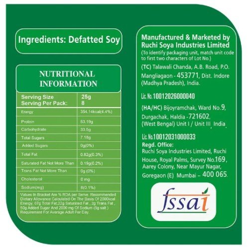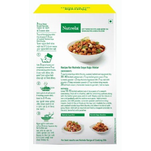 Patanjali Foods Ltd Nutrela Soya Mini Chunks are made from soy flour. Soya Chunks contain immunity building nutrients, protein, iron and zinc. It is rich in dietary fiber and strengthens your immunity. It is very easy to prepare and makes tasty dishes. They are a blank canvas that you can paint on, they are odourless and tasteless by themselves. It can be used in many dishes and it is healthy and a good source of calcium. It is also a great replacement for chicken or any other meat.
